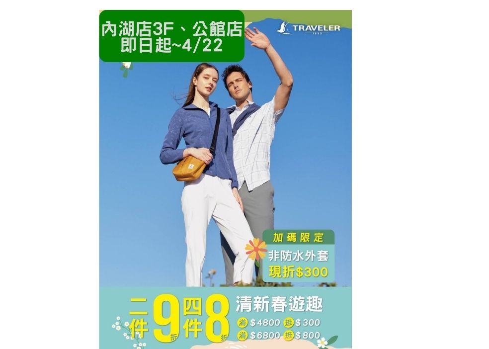 買2件9折、4件8折,單筆滿4800抵300,6800抵800,非防水外套現折300